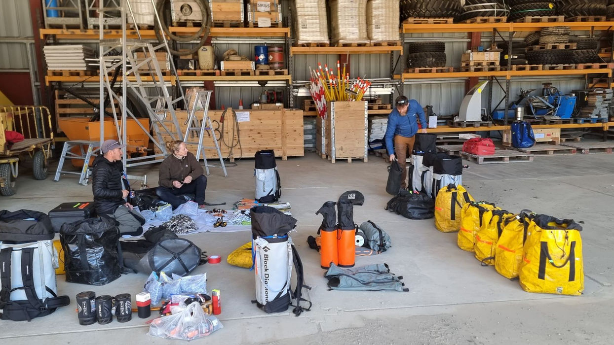 We spent a week at this location. For the climbers, it was time to study the wall, plan their lines, and begin the ascent. For me, it was time to prepare one of the more physically demanding parts of the science programme: while I was not supposed to join anyone on the wall and ski around it, turns out that climbers can be convincing. I found myself agreeing to collect the rock samples I needed myself, with the tremendous help of everyone. It took some logistics. And drills and heavy drill bits. The samples would allow researchers to date the surface exposure of the rock — to understand when this face was last covered by ice, and how the glacier that once filled this valley has retreated over time.