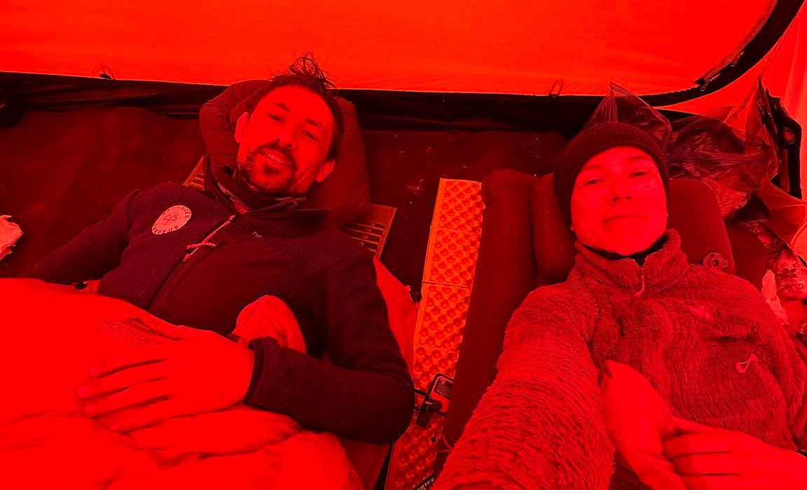 I remember one particular day in detail. I was completely drenched through every layer of clothing, all the way down to the base layer, and I could feel the cold beginning to reach the core of my body. I told Matthieu that if we stopped again, we would have to pitch the tent immediately. Kiting with the wind behind me kept me warm enough. The moment I slowed or stopped, the wind pulled the heat from me faster than my body could replace it. We pitched the tent. I stripped off the wet clothes, pulled on dry layers, and spent a couple of hours drinking hot water inside my sleeping bag. It was a close call.