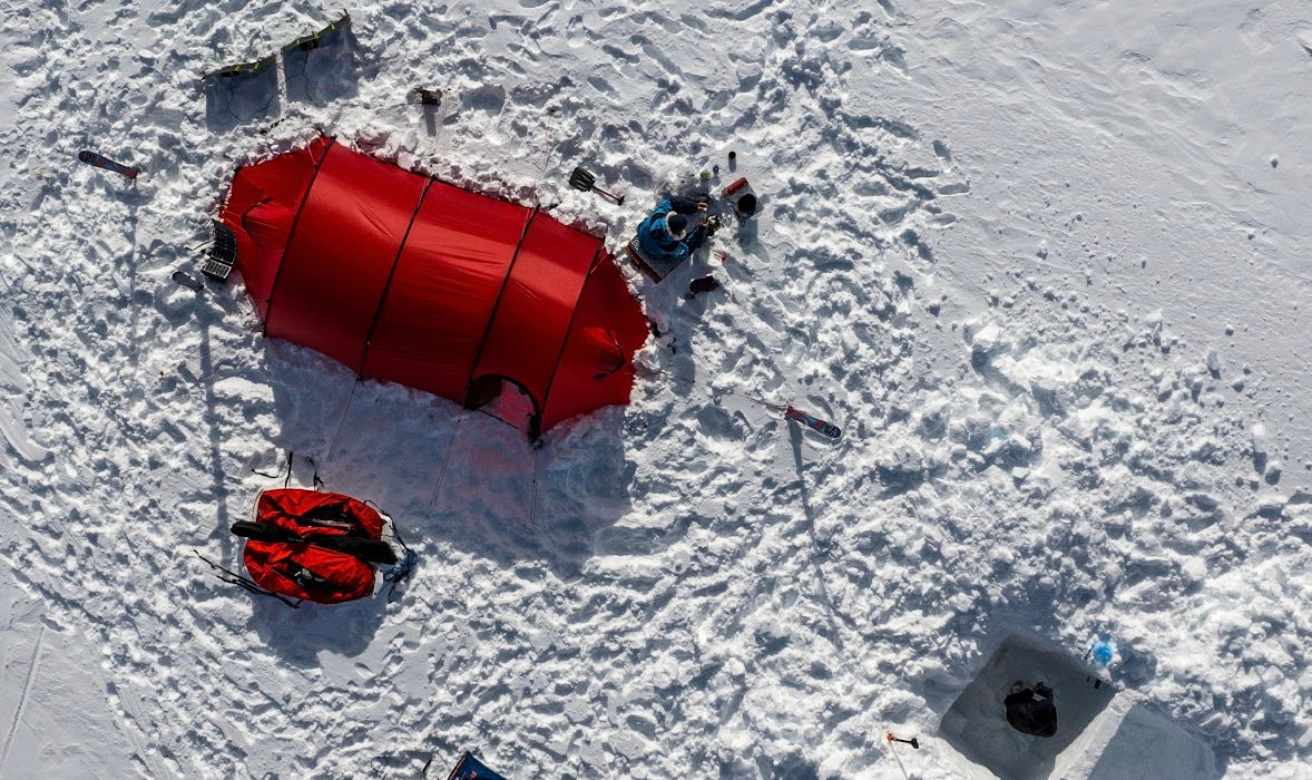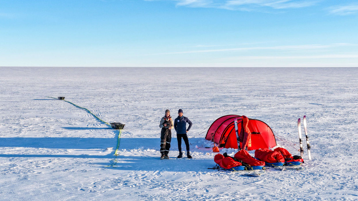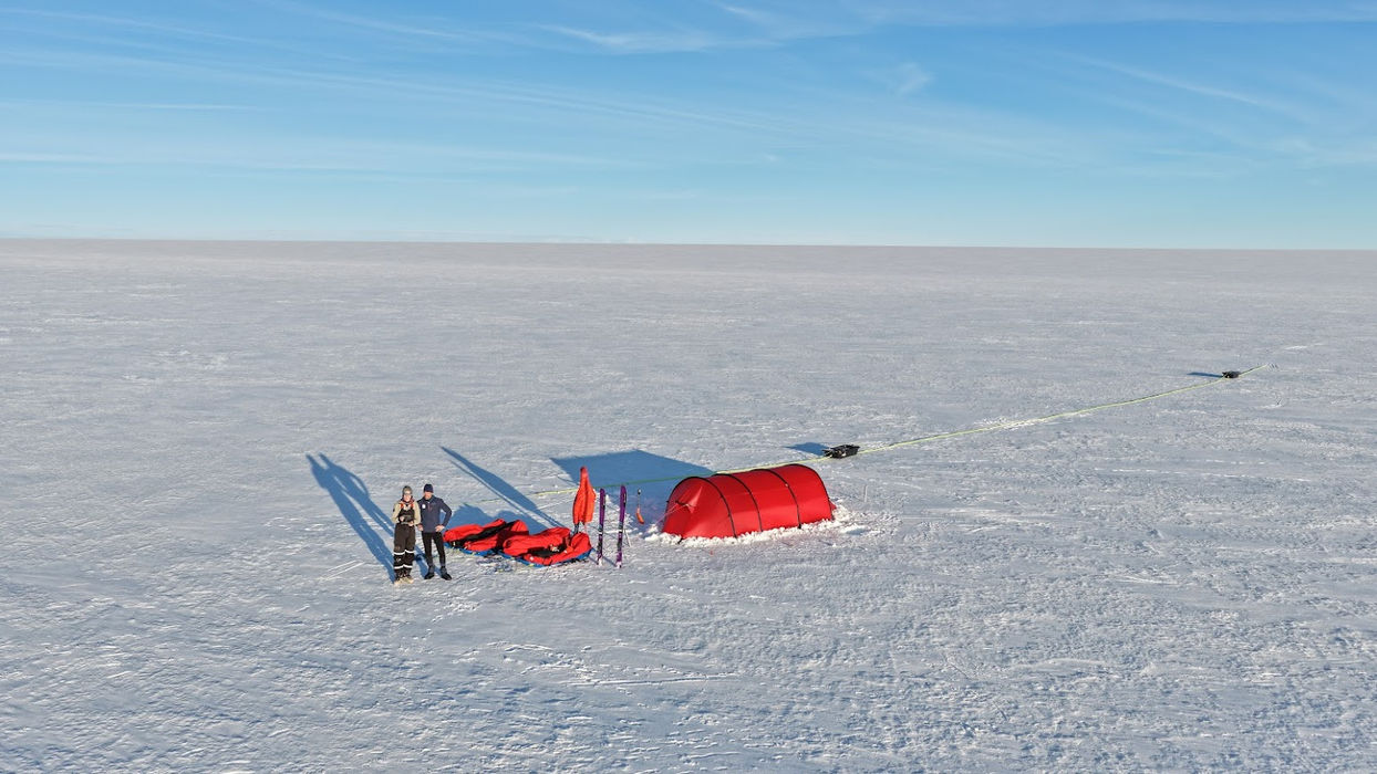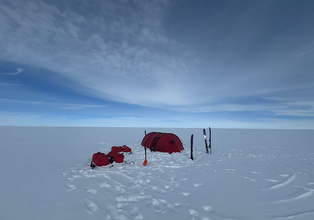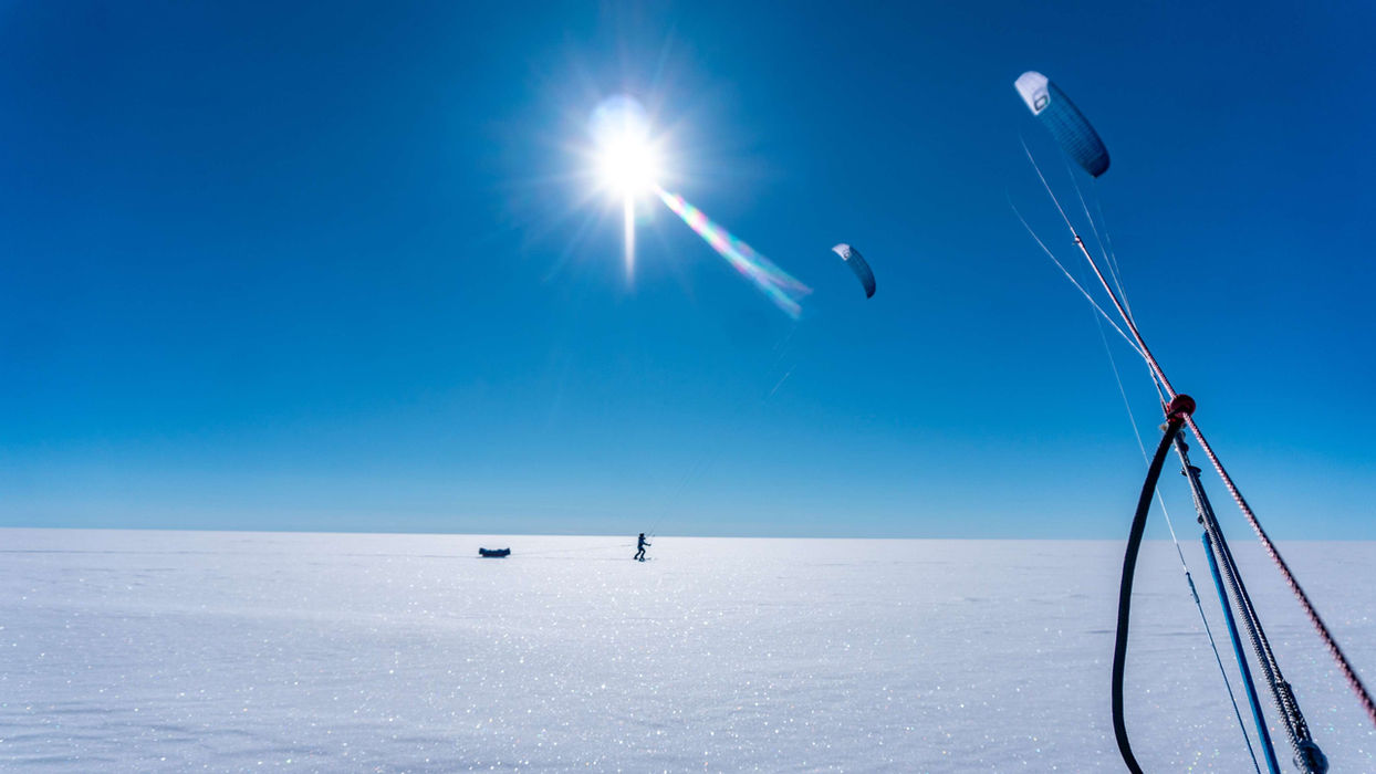 The next morning brought unexpected sunshine. We laid everything outside to dry — sleeping bags, clothing, kites, lines — and what followed became one of our best days of the expedition: good conditions, fast progress, the radar collecting data cleanly as we pulled it across the plateau. We had proved that ground-penetrating radar could be operated while kite skiing. The batteries presented challenges that we carefully noted for improvement. But the concept worked.