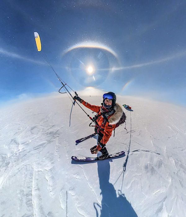 What followed was many months of intensive training — in France, in Norway, Svalbard and alongside some of the most experienced kite practitioners on Earth. Kite skiing is deceptively technical. The kite is not simply a sail: it is a dynamic, three-dimensional system that must be flown with constant attention, reading the wind, anticipating gusts, managing lines that can tangle in ways that range from inconvenient to ridiculous. Progress came, but slowly. Every session taught me something new, and every new thing I learned revealed three more things I had not yet understood.