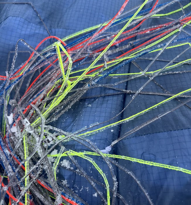 Southern Greenland in summer is warmer, wetter, and more unpredictable than the high plateau. From the first days, we were kiting in fog so thick and so humid that ice crystals formed on the kites and lines, adding weight and making the kites sluggish in the light winds we were dealing with. Then came the rain.