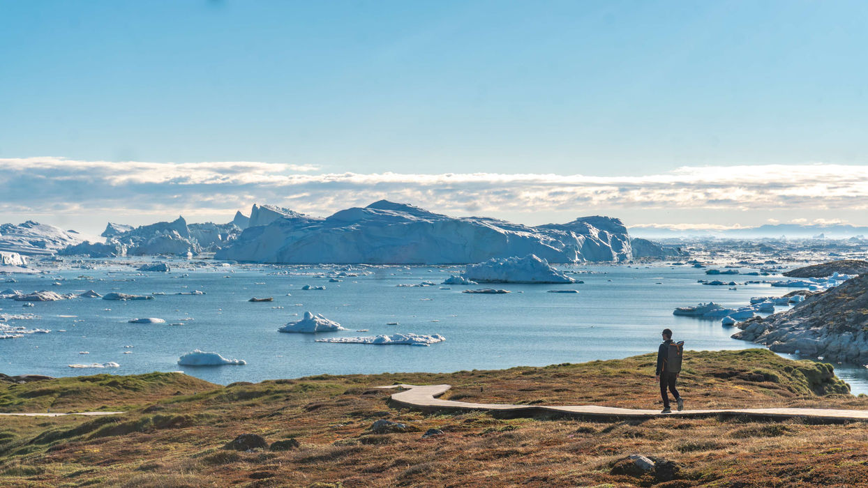 Ilulissat sits on the shore of Disko Bay in West Greenland and is listed as a UNESCO World Heritage Site, for reasons that become immediately obvious the moment you see it. The Ilulissat Icefjord — connected to the glacier Sermeq Kujalleq in Greenlandic — is one of the most productive glaciers on Earth, calving vast quantities of ice into the bay in a near-constant procession. The icebergs that drift past the town are monuments: some taller than buildings, some the size of city blocks, all of them luminously, impossibly blue-white in the Arctic light.