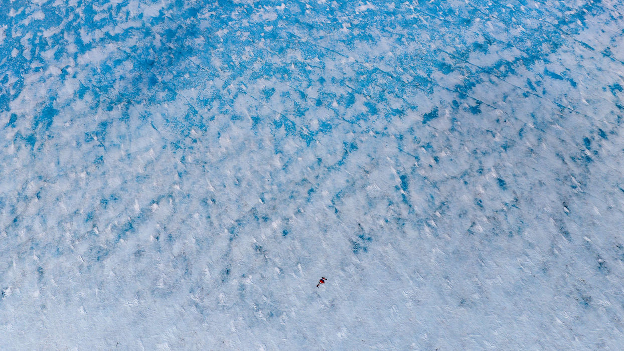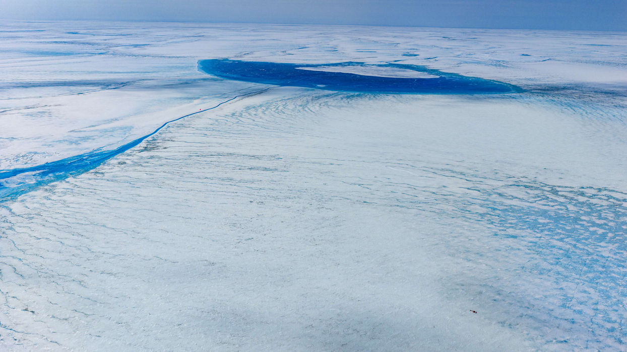 The next morning, the snow was gone in any meaningful sense. A thin crust of ice over a completely saturated snowpack broke the moment you put weight on it, leaving you standing in liquid water. Supraglacial lakes appeared in every direction. Pulling the radar sled was close to impossible. We were no longer skiing across ice. We were, in the most literal sense, water skiing.