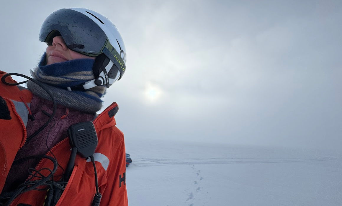 The halo did not last. Over the following days, as we pushed further north, the weather deteriorated. Whiteout conditions — in which cloud and snow surface merge into a single undifferentiated grey — made navigation increasingly demanding. On the ice sheet, a whiteout is not simply uncomfortable. It removes all visual reference for the ground, making it impossible to judge slope, texture, or obstacle. You navigate by GPS and by feel.