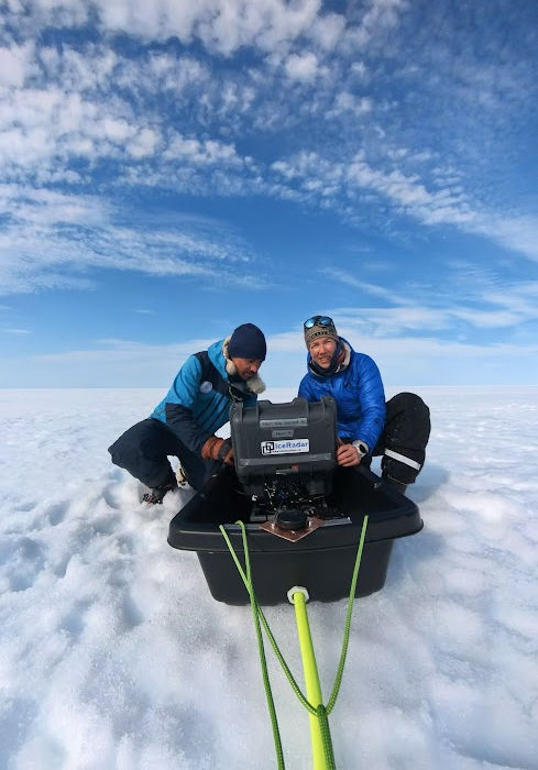 In August 2025, we arrived in Qaqortoq, in southern Greenland — a very different landscape from the high Arctic plateau. This time, we carried a 60-metre deep ground-penetrating radar built by Blue Ice Systems, designed to image the internal structure of the snowpack and the ice beneath. Our route ran from Qaqortoq to Kangerlussuaq, roughly six to seven hundred kilometres, in approximately ten days if conditions permitted.
